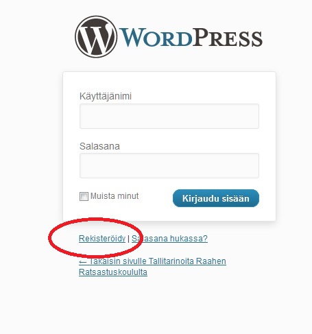 Kirjoita haluamasi käyttäjätunnus (tätä ei voi myöhemmin muuttaa) sekä sähköpostiosoite johon järjestelmä lähettää salasanasi. Kun olet saanut salasanan sähköpostiin, pääset kirjautumaan järjestelmään omilla tunnuksillasi.
